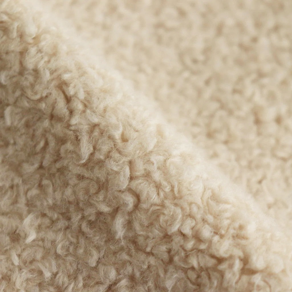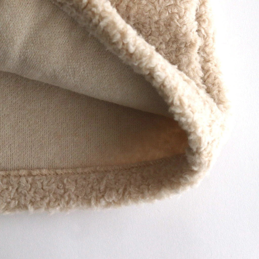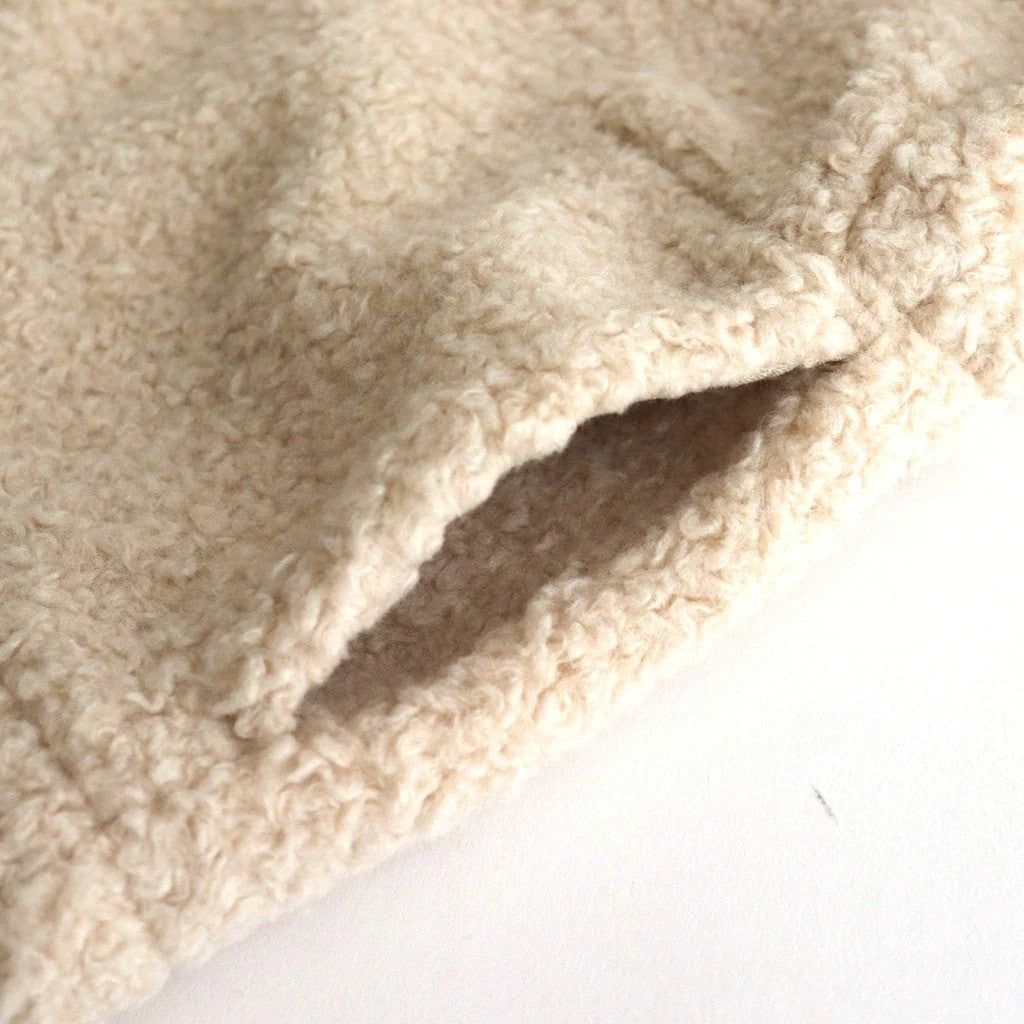 肌触りの柔らかいボアです。仕上げに製品洗いを掛けることで、立体的な表情と膨らみ、風合いを出しています。