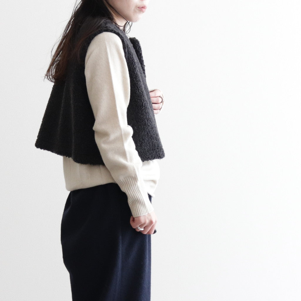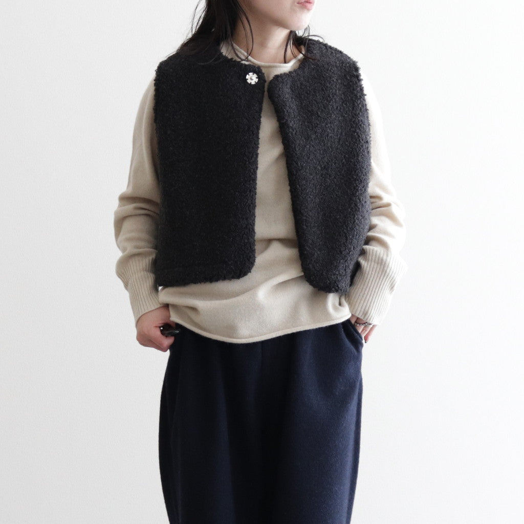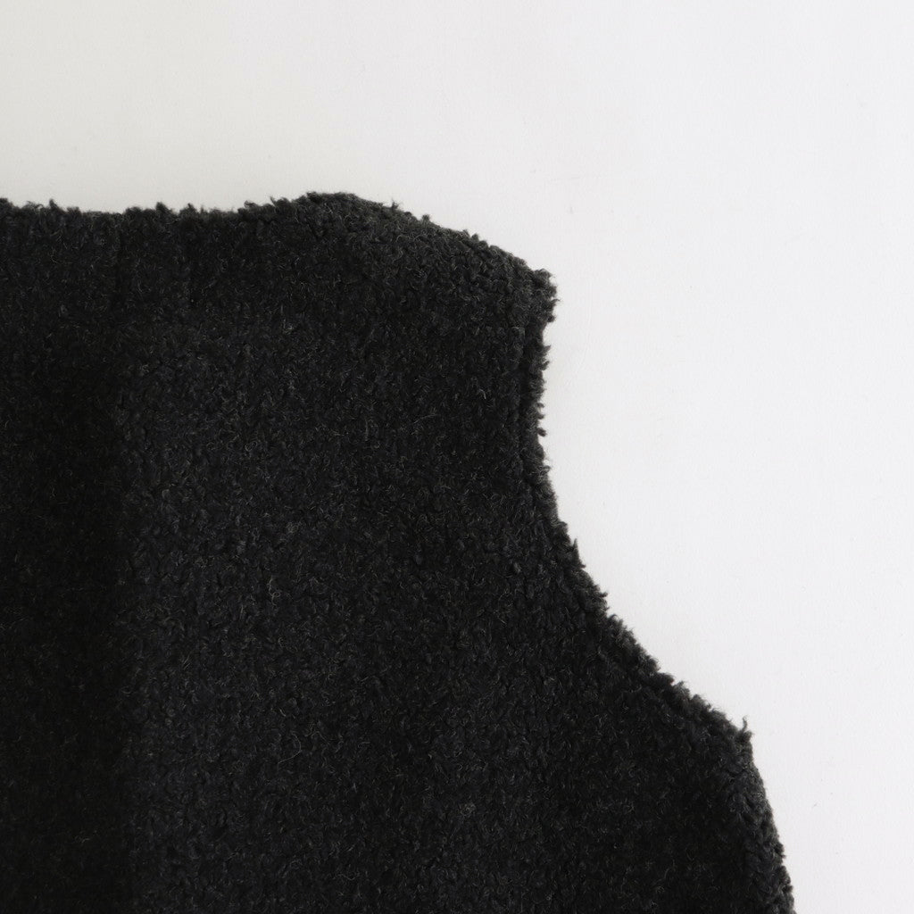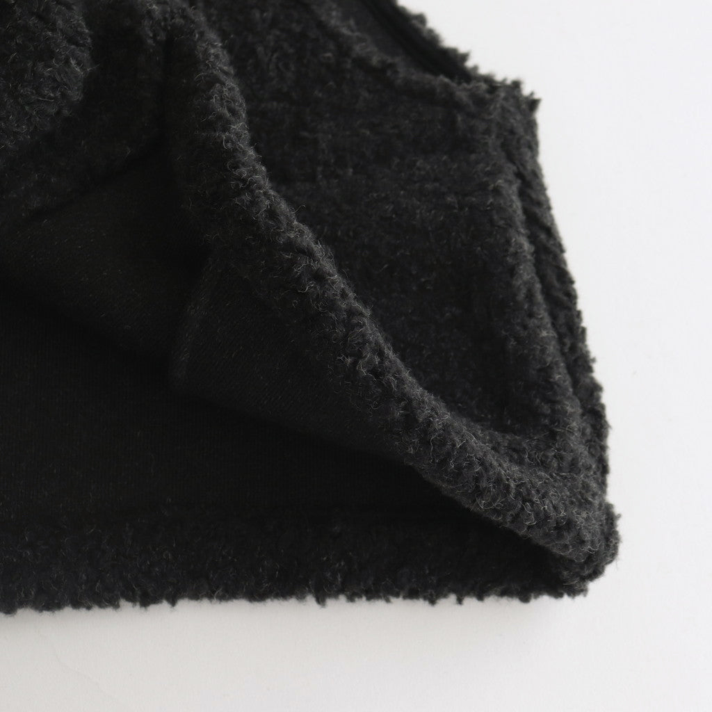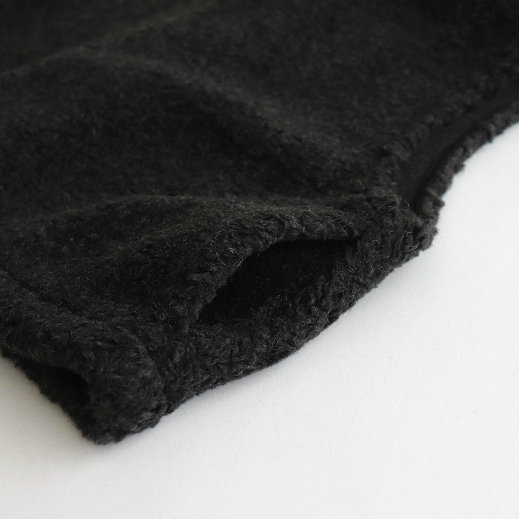 肌触りの柔らかいボアです。仕上げに製品洗いを掛けることで、立体的な表情と膨らみ、風合いを出しています。