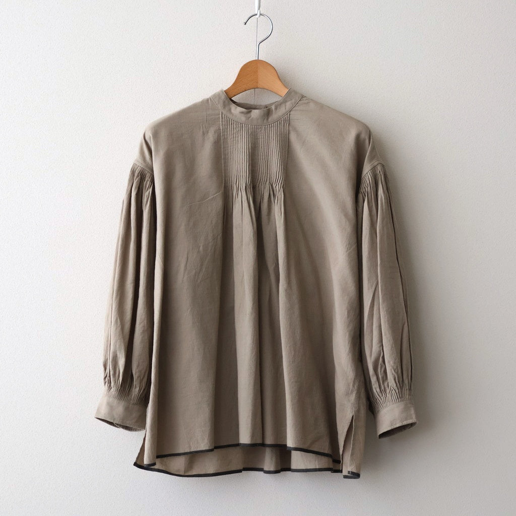 前後には職人さんの手で施されたピンタックを控えめにあしらい、袖付け部分とカフ部分にもピンタックを入れた、ふんわりとボリュームのあるシルエットに仕上がりました。